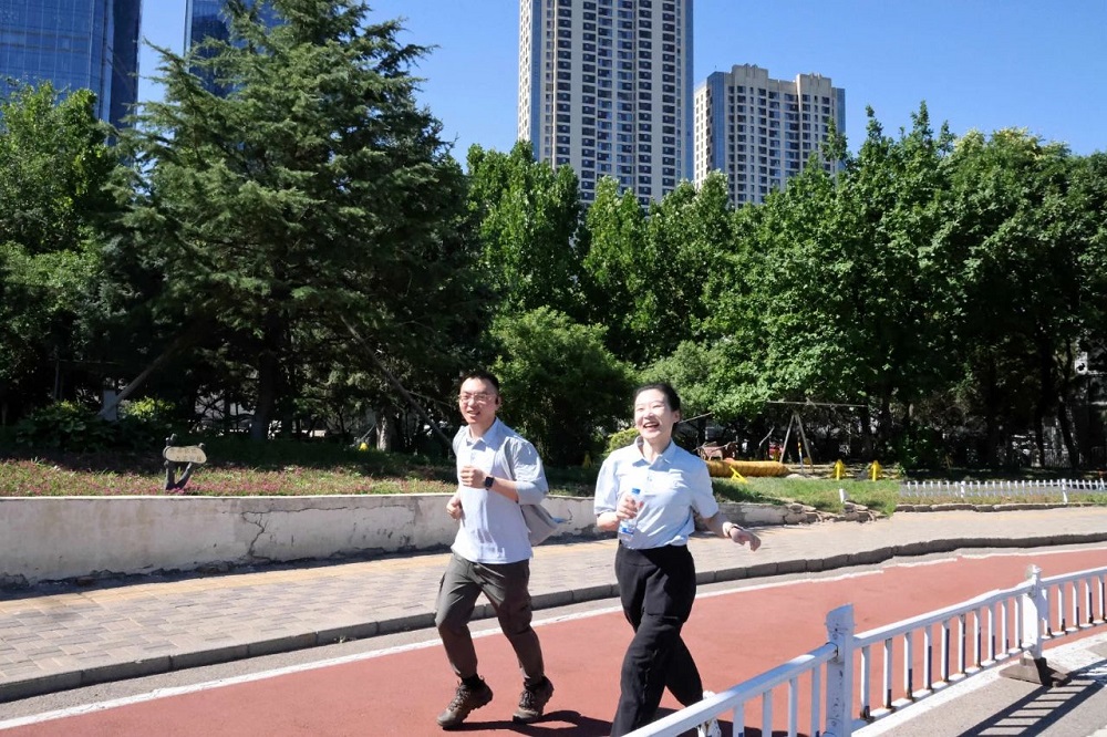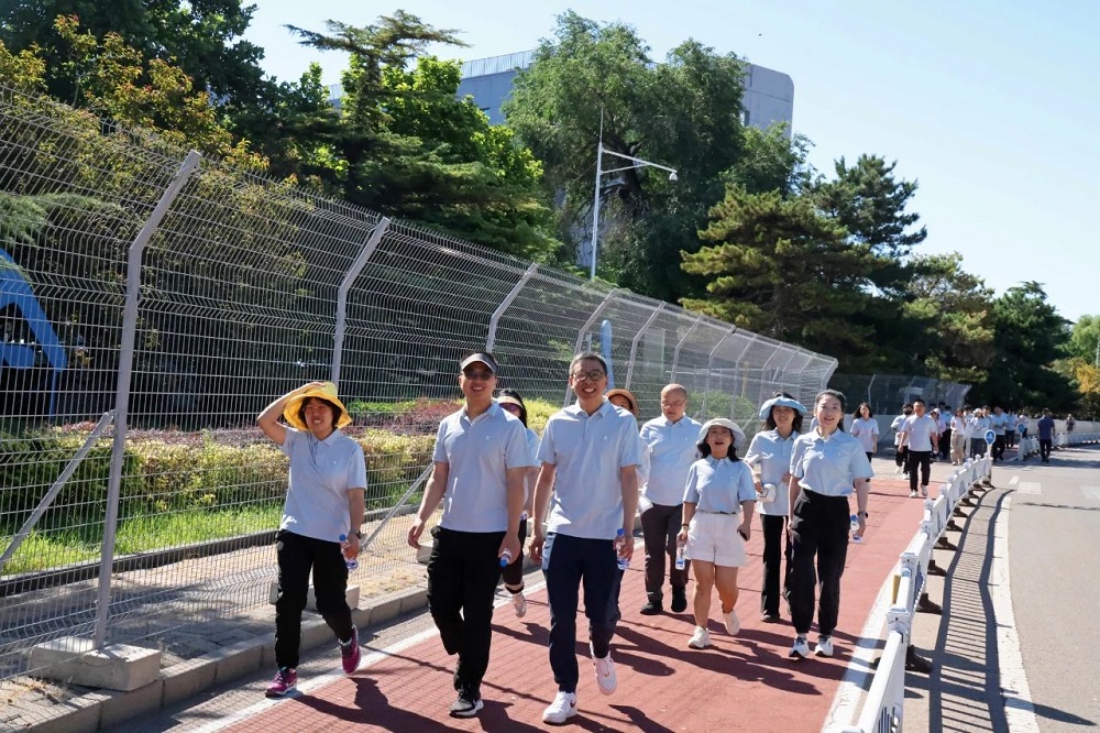 参与活动的员工身着统一的运动服,在奥林匹克体育中心进行5公里健步走活动。过程中,大家互相鼓励、精神昂扬,彰显了sunbet申搏官方网站团队的团结和活力。